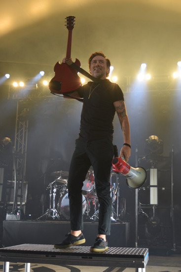 To close out the night was the one and only Rise Against! They made sure to let the crowd know quickly that despite recent news with the election, the band isn't going anywhere as lead singer and guitarist Tim McIlrath growled "We've been around for six presidential administrations and you know what? We're going to be around for the next six!" An intense moment happened with McIlrath broke out the bullhorn to sing portions of tracks, check out the shot we got of him with it!